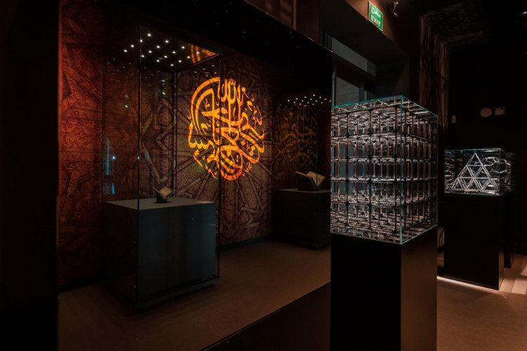 Comprehensive Project that harmonizes a sequence of sacred contents, more than 200 pieces from the most important museums and institutions in the world, organized in circular spaces that symbolize the stations that the pilgrims cross before prostrating the Ka´aba, the sacred place and the most important religious pilgrimage in Islam. The scenographic light unifies an almost magical atmosphere, where the art pieces become treasures that transmit their origins and meanings.