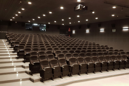 Dado el uso variado que se le quería dar al auditorio, se optó por integrar dos subsistemas independientes para funcionar como auditorio propiamente dicho o como sala de proyección de cine. Para ello se ha optado por fabricantes líderes y que aseguran la calidad necesaria.